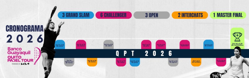 Respaldado por Banco Guayaquil y KIA, el QPT continúa siendo referente de profesionalismo y excelencia. Con el paso de los años, ha logrado posicionarse como el circuito que marca el rumbo del pádel en Ecuador, no solo por su impecable organización, sino también por su capacidad para impulsar talentos emergentes y consolidar a los mejores jugadores en el ranking.